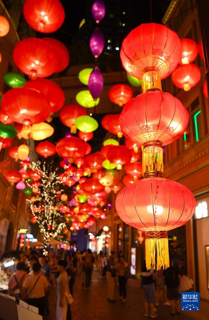 9月17日,人們在利東街觀賞彩燈。