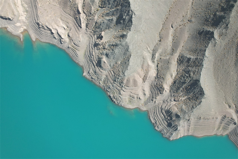 新疆吐魯番市高昌區(qū)大河沿水庫(無人機(jī)照片)。(新疆日?qǐng)?bào)記者鄒懿 攝)