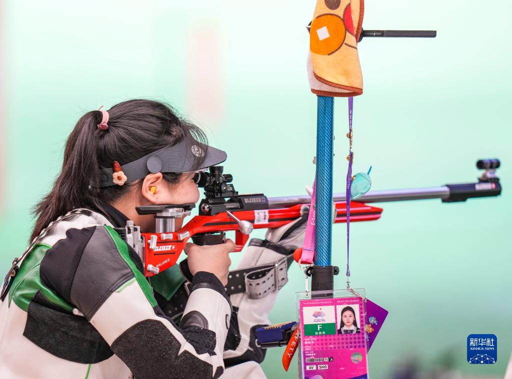 當(dāng)日,在浙江省杭州市富陽區(qū)富陽銀湖體育中心舉行的杭州亞運(yùn)會射擊女子50米步槍3種姿勢團(tuán)體賽決賽中,中國隊(duì)以總分1773分的成績?nèi)〉媒鹋?,印度?duì)和韓國隊(duì)分獲銀牌、銅牌。