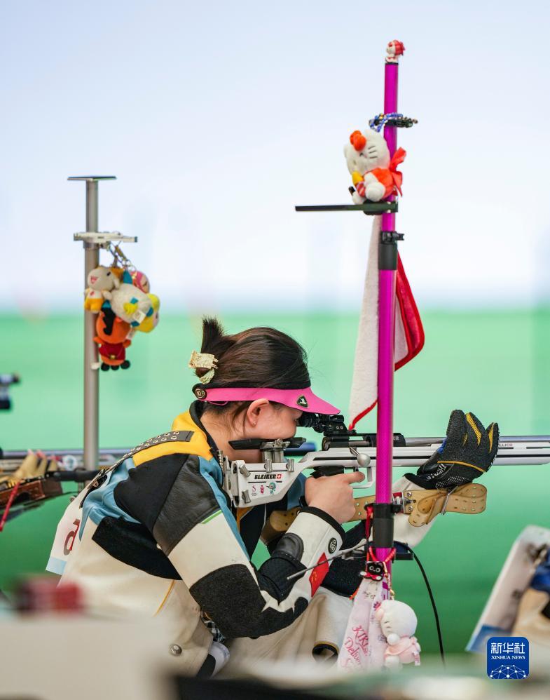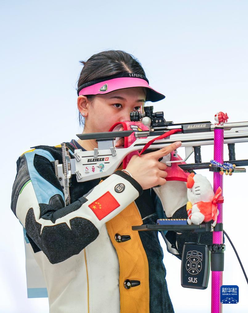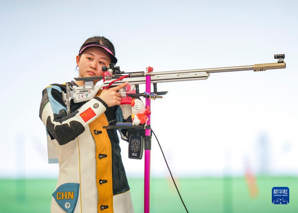 當(dāng)日,在浙江省杭州市富陽區(qū)富陽銀湖體育中心舉行的杭州亞運(yùn)會射擊女子50米步槍3種姿勢團(tuán)體賽決賽中,中國隊(duì)以總分1773分的成績?nèi)〉媒鹋疲《汝?duì)和韓國隊(duì)分獲銀牌、銅牌。