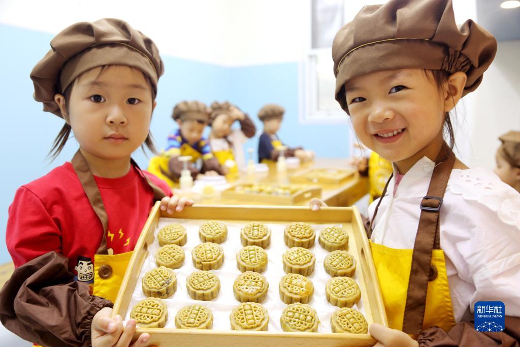 9月26日,江蘇省南京市一家幼兒園的小朋友在學(xué)習(xí)制作冰皮月餅。