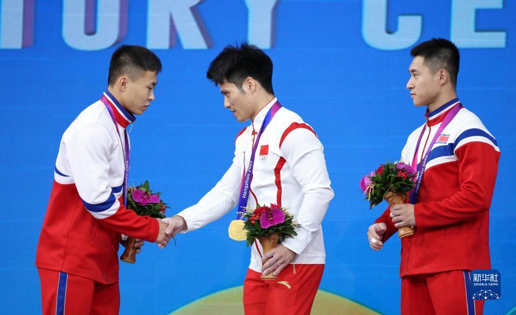 當(dāng)日,在杭州亞運(yùn)會(huì)舉重項(xiàng)目男子61公斤級(jí)比賽中,中國(guó)選手李發(fā)彬以抓舉143公斤、挺舉167公斤,總成績(jī)310公斤獲得金牌,朝鮮選手樸明近和金忠國(guó)分獲二、三名。