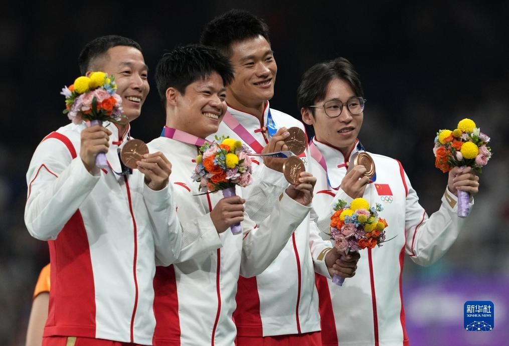 這是湯星強、謝震業(yè)、蘇炳添、吳智強遞補獲得的東京奧運會男子4X100米接力銅牌(10月4日攝)。