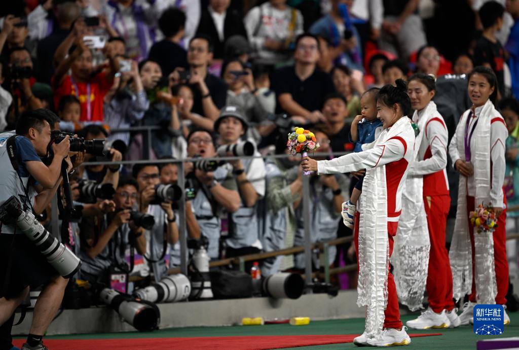 10月4日,蘇炳添的兒子蘇浩宸在頒獎儀式后。