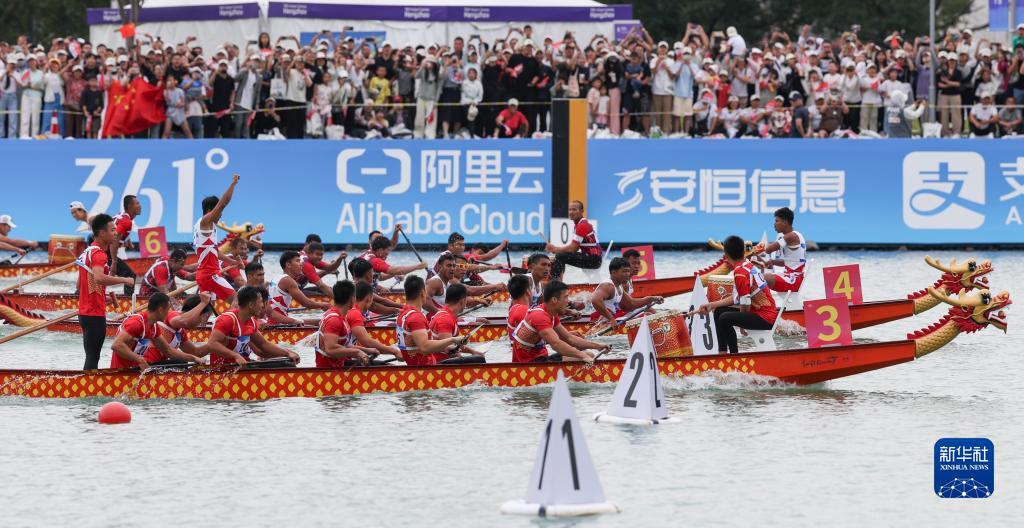當(dāng)日,在浙江溫州龍舟運(yùn)動(dòng)中心進(jìn)行的杭州亞運(yùn)會(huì)男子組12人龍舟500米直道競速賽中,中國隊(duì)以2分09秒152的成績獲得冠軍。印度尼西亞隊(duì)獲得亞軍,泰國隊(duì)獲得季軍。