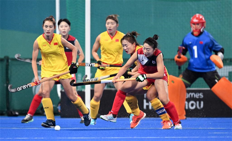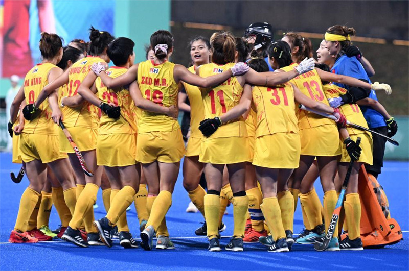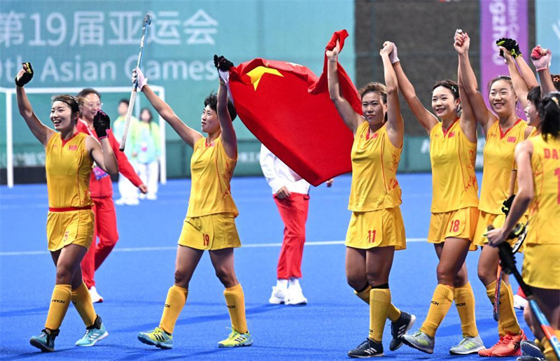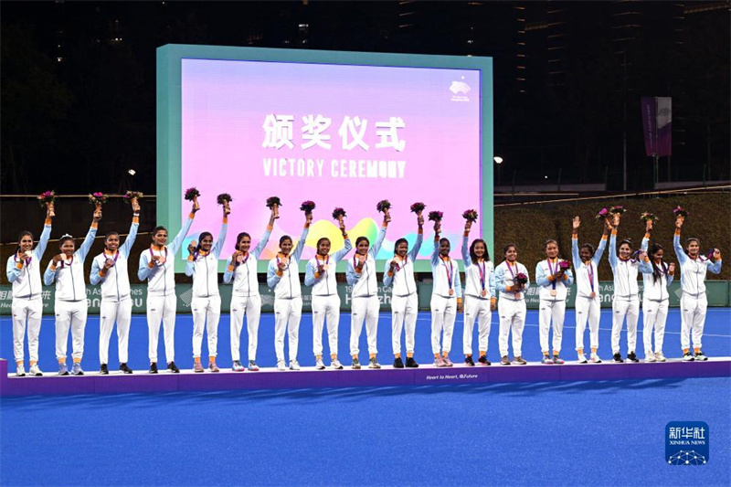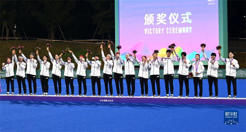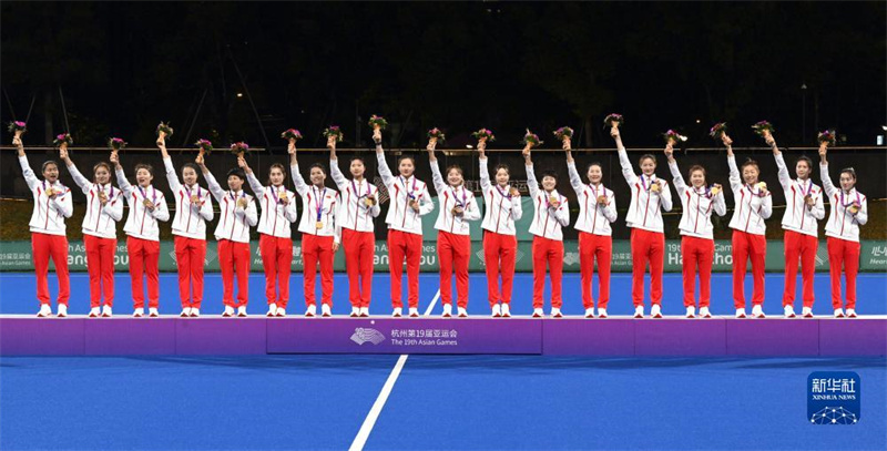 當日,在杭州亞運會曲棍球項目女子決賽中,中國隊以2比0戰(zhàn)勝韓國隊,獲得冠軍。印度隊獲得季軍。