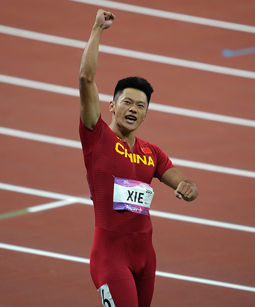 中國選手謝震業(yè)以9秒97的成績撞線奪冠