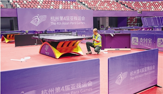 競賽場地是場館的核心。記者走訪多個競賽場館后了解到,亞殘運(yùn)會競賽場地的轉(zhuǎn)換要考慮到殘疾人比賽特點(diǎn),在場地和器材調(diào)試上精益求精。