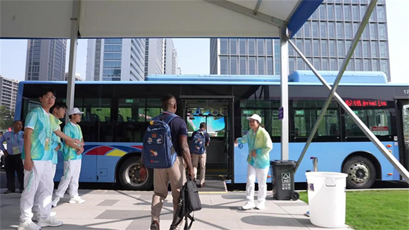 在亞殘運村,運動員們交通出行相當(dāng)便利,無論是小型接駁車還是接駁巴士,每一輛車都配備了齊全的助殘設(shè)備,輪椅可以輕松上下?!按濉眱?nèi)站點安排合理,從居住區(qū)到運動員餐廳,從歡迎中心到綜合門診部,“村”內(nèi)交通路線四通八達(dá),班次密集,乘坐方便,駕駛員們的服務(wù)更是讓人豎起大拇指。