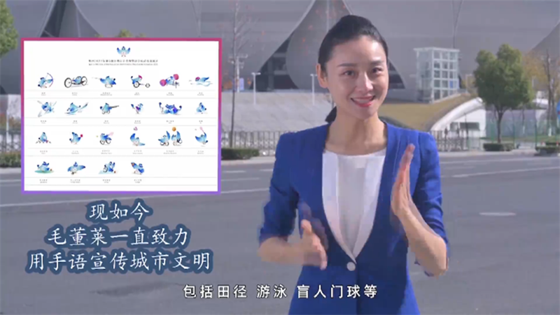 畫(huà)面中這位用手語(yǔ)和大家交流的女士,正是“手語(yǔ)姐姐”毛董萊。在本屆杭州亞殘運(yùn)會(huì)上,她將成為火炬手參與火炬接力,并將在整個(gè)亞殘運(yùn)會(huì)期間,用手語(yǔ)為大家提供幫助。今天,一起來(lái)聽(tīng)聽(tīng)“手語(yǔ)姐姐”毛董萊的故事。