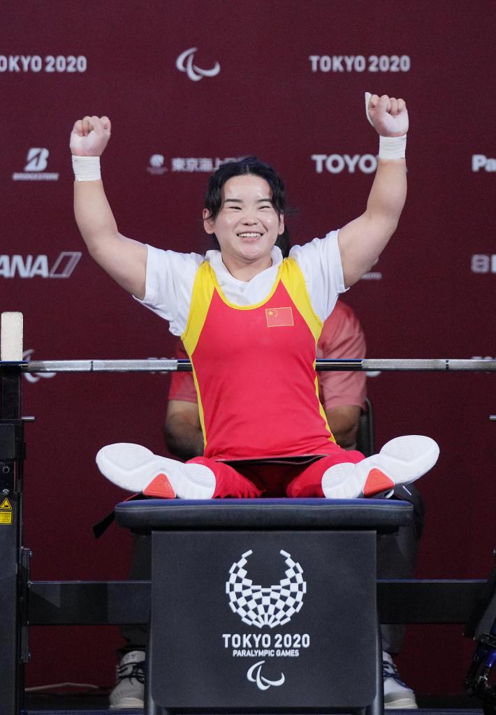 2021年8月26日,在東京殘奧會(huì)舉重女子41公斤級(jí)比賽中,中國(guó)選手郭玲玲奪得金牌,并以109公斤的成績(jī)打破世界紀(jì)錄。新華社記者才揚(yáng)攝