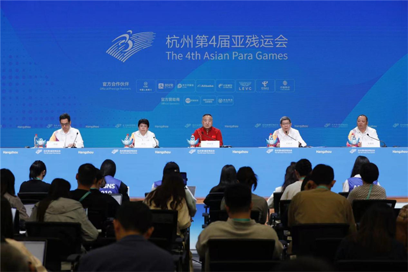 10月24日,杭州亞殘運會賽事與場館運行主題新聞發(fā)布會在主媒體中心舉行。中國殘疾人體育運動管理中心主任、中國代表團副秘書長楊金奎,杭州亞殘運會主新聞發(fā)言人毛根洪,杭州文匯學(xué)校草地擲球場新聞發(fā)言人陳萍,臨平體育中心場館群新聞發(fā)言人吳巍峰介紹亞殘運會賽事與場館運行整體情況及亮點,并回應(yīng)媒體關(guān)切,杭州亞殘運會主媒體中心副指揮長楊猛主持會議。