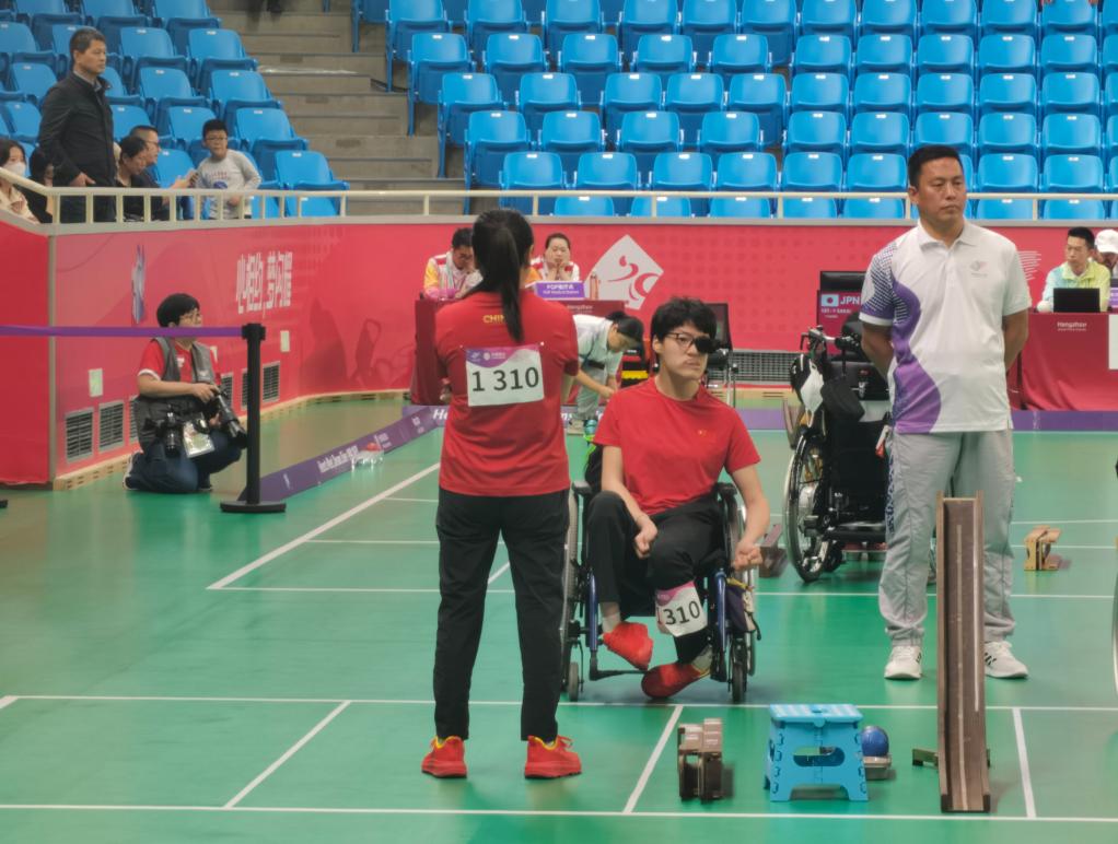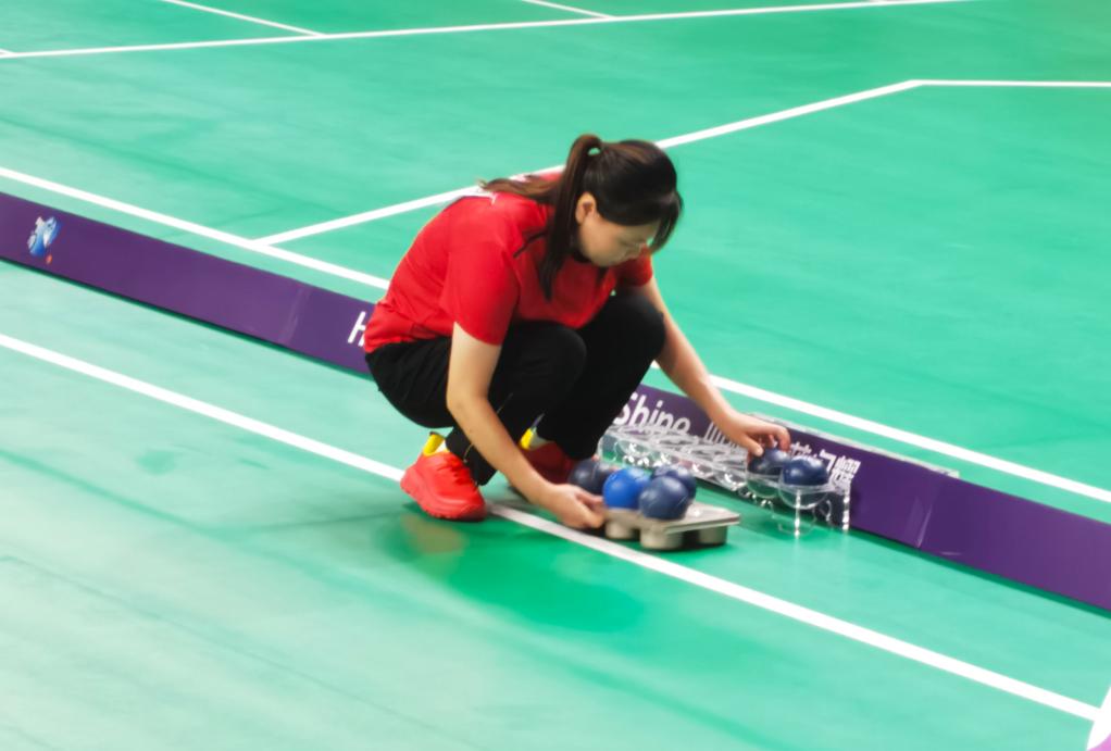 硬地滾球是最具包容性的殘疾人運(yùn)動之一,專門為腦癱患者、嚴(yán)重軀體功能障礙的運(yùn)動員而設(shè)立。其根據(jù)運(yùn)動員殘疾程度分為4個級別,楊貝貝屬于其中較重的級別,無法獨立擲球,因此需要軌道器械和競賽輔助人員的幫助。