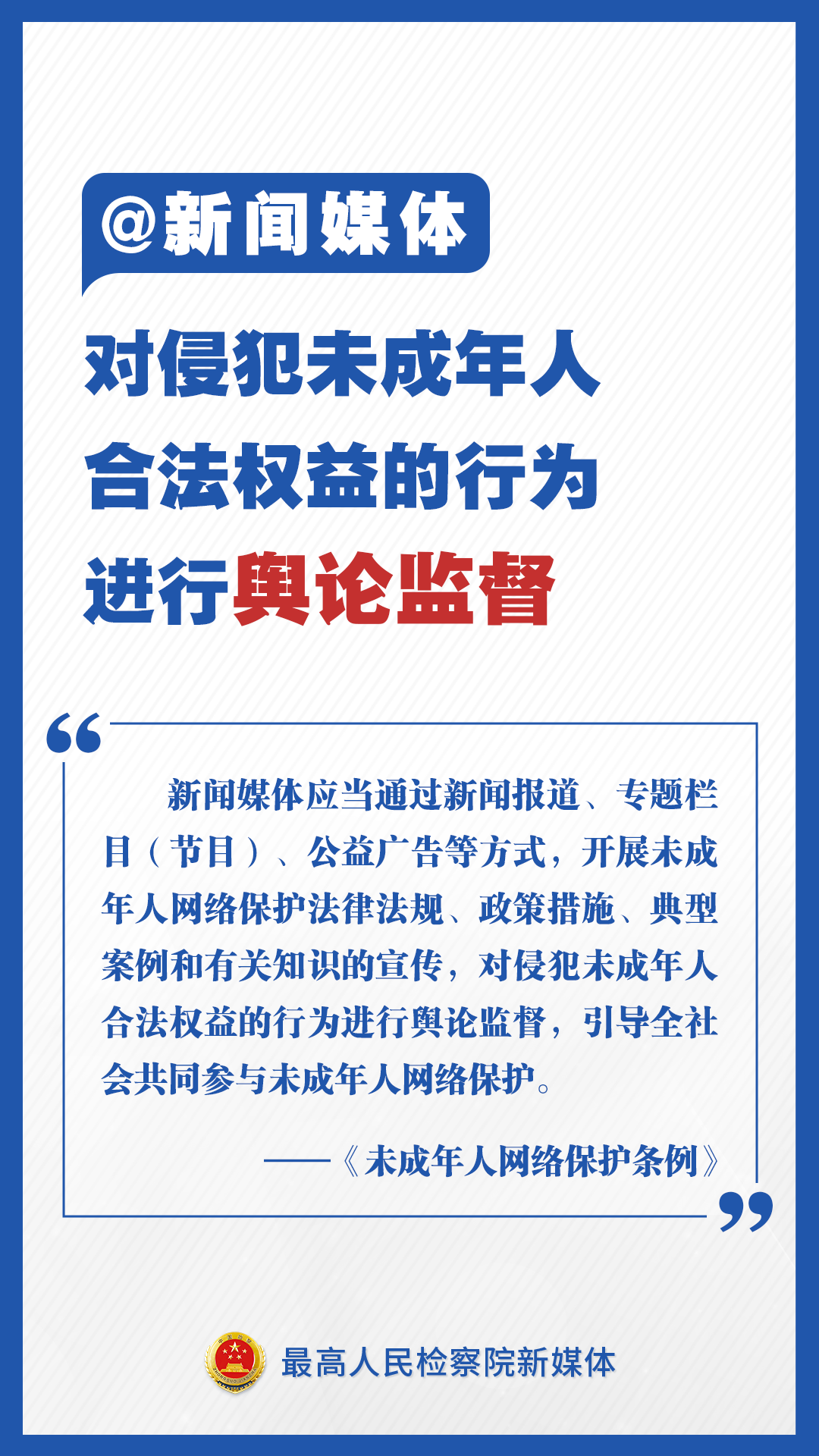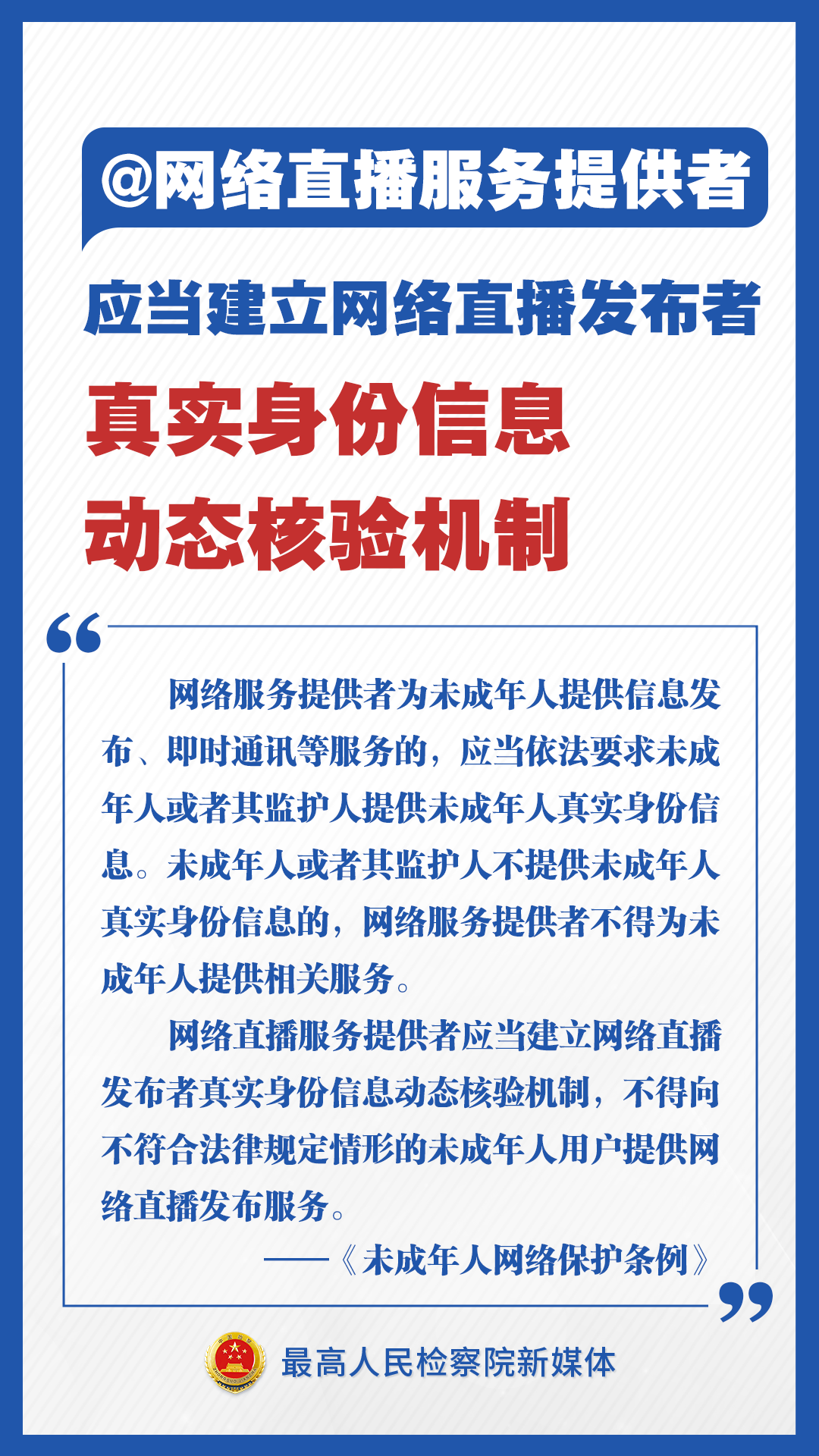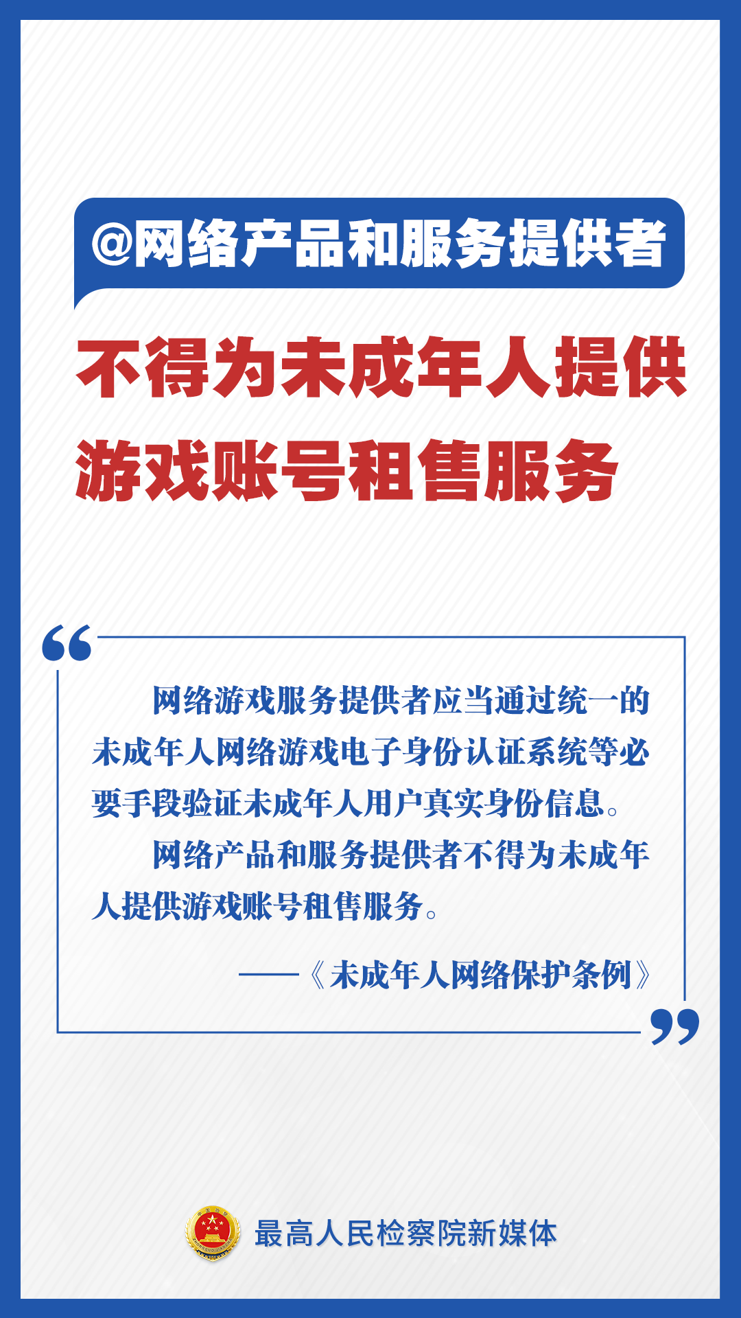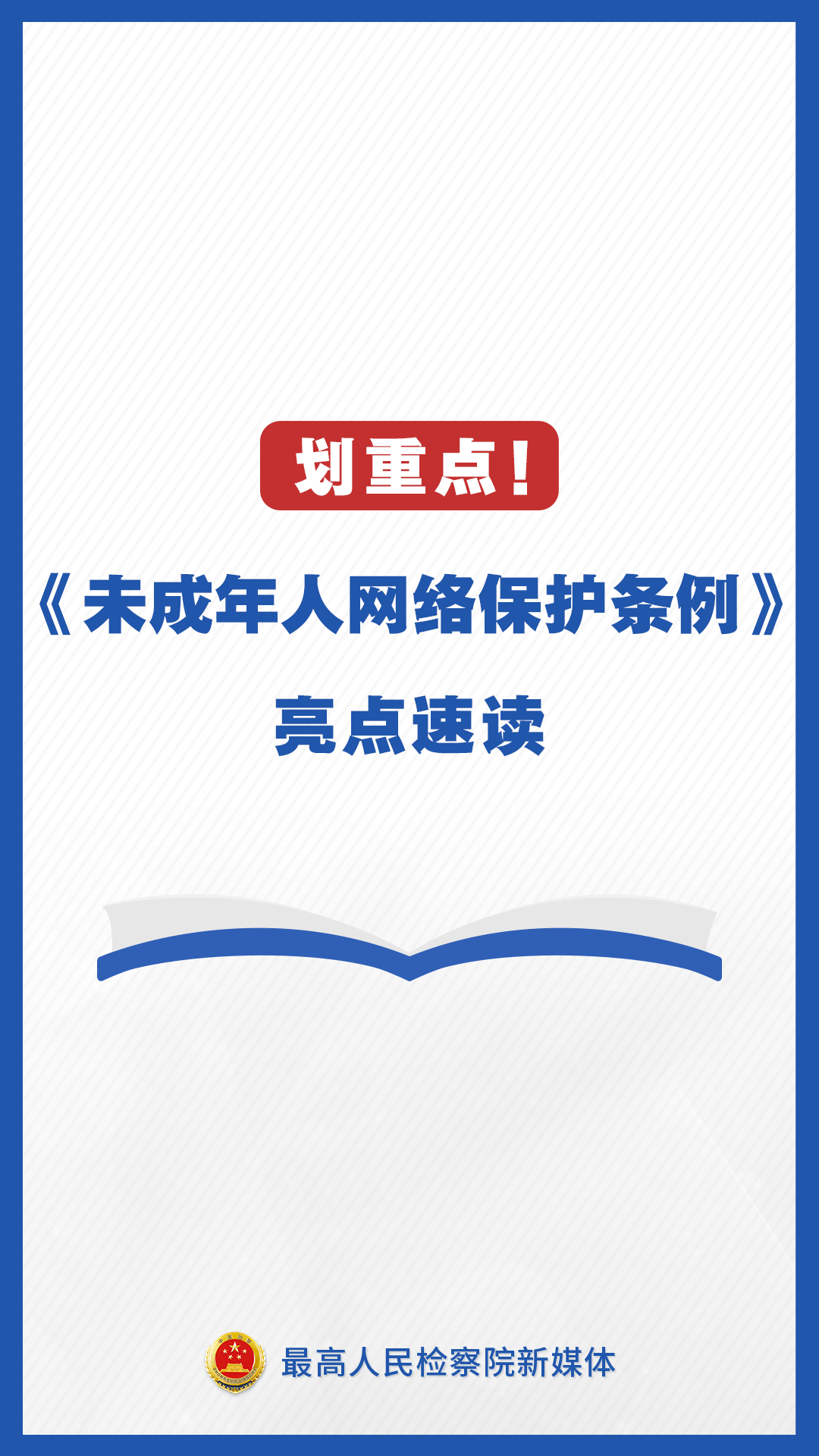 《未成年人網(wǎng)絡(luò)保護條例》來了!檢察君為你劃重點,速讀未成年人網(wǎng)絡(luò)保護新舉措!不得通過網(wǎng)絡(luò)對未成年人實施侮辱、誹謗等網(wǎng)絡(luò)欺凌行為;不得為未成年人提供游戲賬號租售服務(wù);建立網(wǎng)絡(luò)直播發(fā)布者真實身份信息動態(tài)核驗機制……速速轉(zhuǎn)發(fā)擴散!