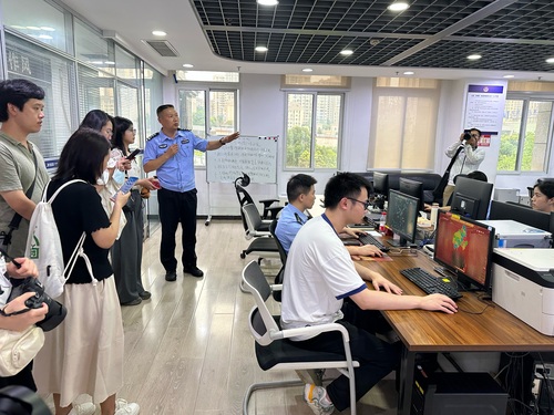 涪陵區(qū)公安局圖偵支隊(duì)支隊(duì)長(zhǎng)徐浩向采訪團(tuán)介紹數(shù)字化警務(wù)改革工作。人民政協(xié)網(wǎng)記者王慧文 攝
