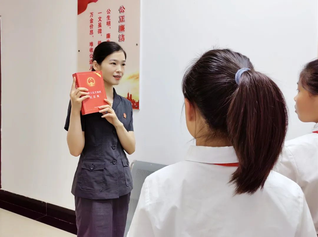 ▲鄭州市金水區(qū)人民法院舉辦開(kāi)放日活動(dòng),為前來(lái)參觀的學(xué)生講解民法典。