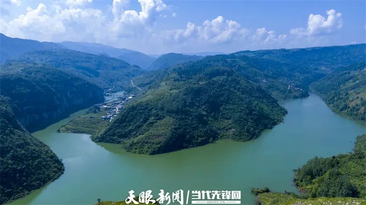 位于烏江源的畢節(jié)市納雍縣姑開鄉(xiāng)引底河呈現(xiàn)高峽平湖景觀,河面在藍天白云、青山綠樹映襯下美如畫。張曉勇 攝