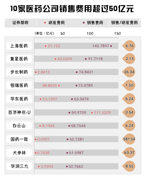 3.10家A股藥企銷售費(fèi)用超過50億元