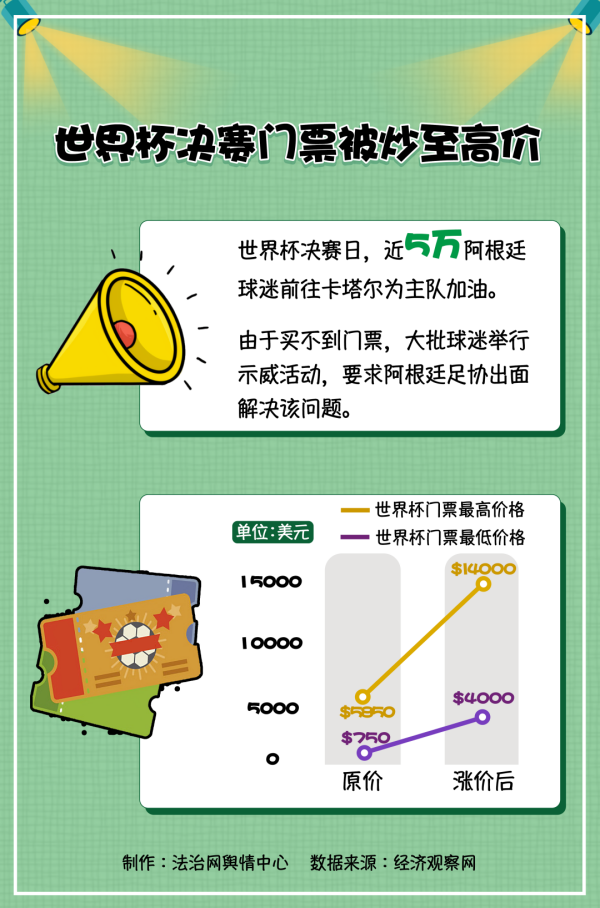 5. 經(jīng)濟(jì)觀察網(wǎng):世界杯決賽門票已炒到近10萬(wàn)元,超5萬(wàn)名阿根廷球迷涌入卡塔爾