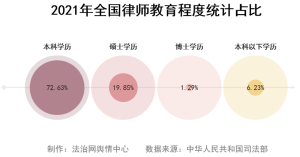 從教育程度來看,高學(xué)歷是律師隊(duì)伍典型特征,本科及以上學(xué)歷占比達(dá)93.77%。