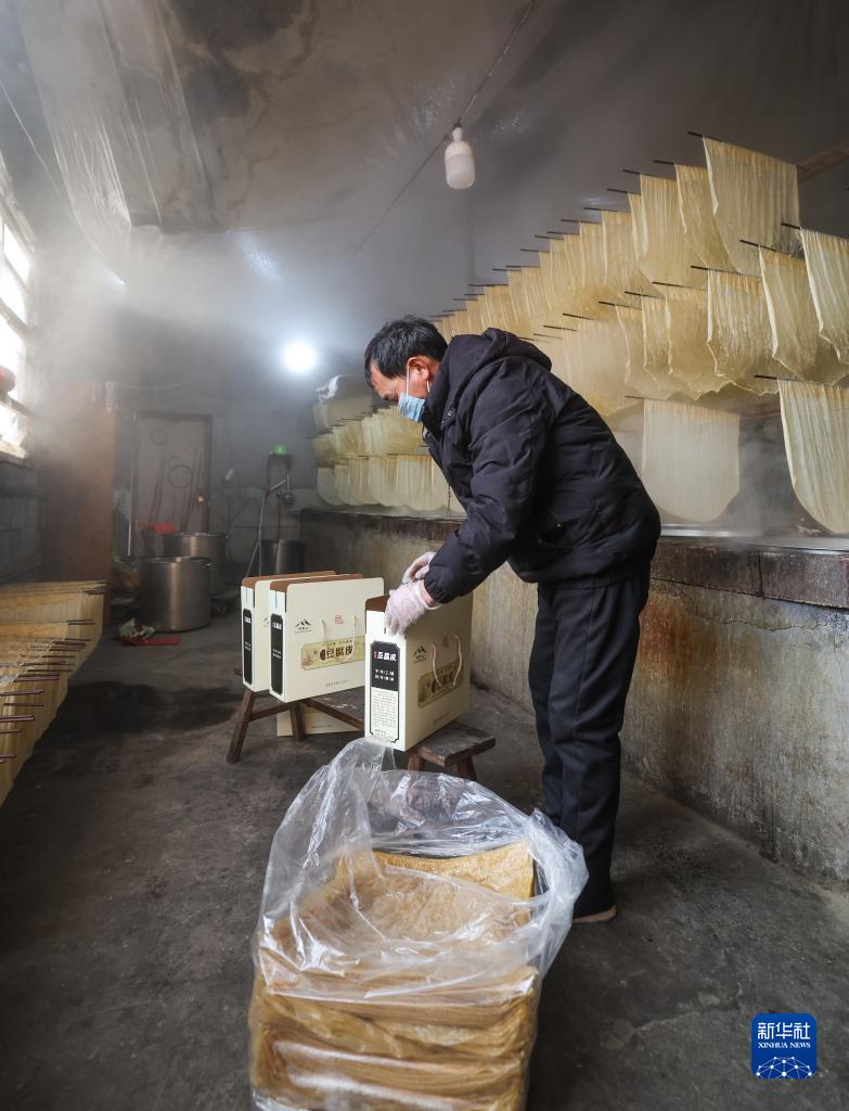 春節(jié)臨近,浙江省諸暨市安華鎮(zhèn)的傳統(tǒng)年貨——豆腐皮迎來(lái)銷售旺季。村民加緊制作豆腐皮,供應(yīng)節(jié)日市場(chǎng)。
