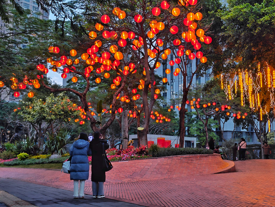 廈門思明美仁園內(nèi),大紅燈籠掛滿樹。胡康強(qiáng)攝