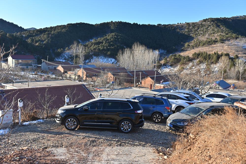 偏橋子村民宿的簡易停車場上停滿了游客的車。新華社記者宋為偉 攝