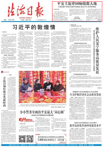 以2023年1月起施行的《江西省平安建設(shè)條例》為例,江西率先完成平安建設(shè)省級立法工作,以人民群眾的需求為導(dǎo)向,讓平安建設(shè)內(nèi)涵不斷拓展延伸——從發(fā)案少、秩序好的“小治安”體系拓展到全方位、多層次的“大平安”格局;從過去以治安安全為中心拓展到如今的經(jīng)濟、政治、文化、社會、生態(tài)等多領(lǐng)域安全,并用立法固化優(yōu)勢,轉(zhuǎn)化為治理效能。