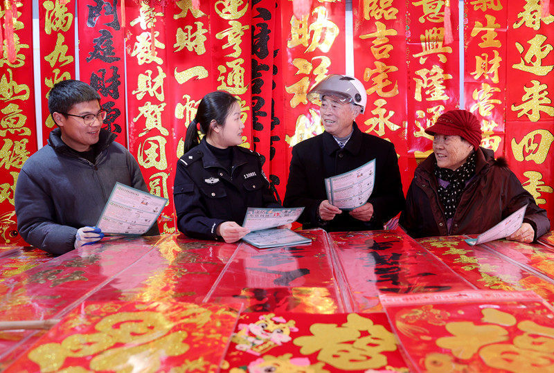 春節(jié)將至,江蘇省宿遷市公安局經(jīng)濟(jì)技術(shù)開發(fā)區(qū)分局組織民警走進(jìn)市場(chǎng),面對(duì)面向群眾宣傳禁毒禁賭、防火防盜、預(yù)防網(wǎng)絡(luò)詐騙等安全知識(shí),切實(shí)提高群眾自我保護(hù)意識(shí)。