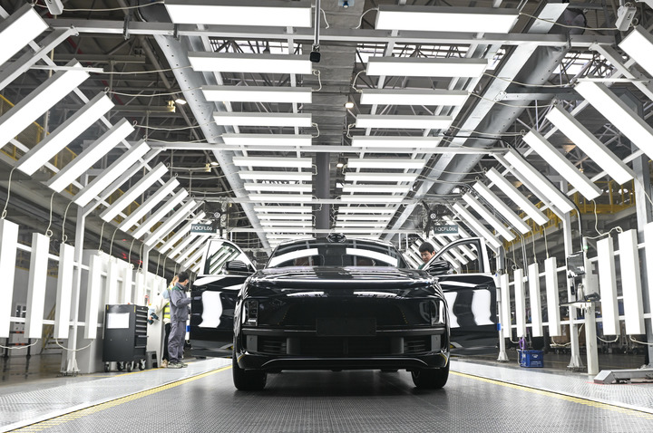 在理想汽車江蘇常州基地,成品汽車準備下線。新華社記者季春鵬 攝