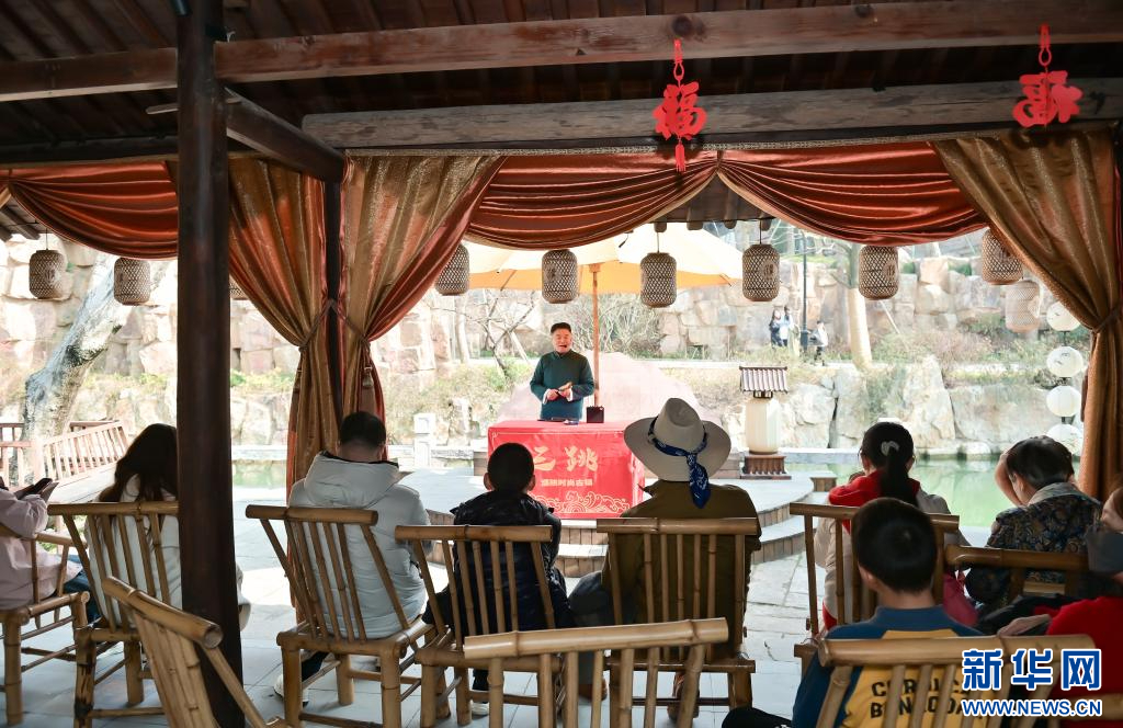 濮院瓦舍說(shuō)書——桐鄉(xiāng)三跳。新華網(wǎng)發(fā) 濮院時(shí)尚古鎮(zhèn)供圖