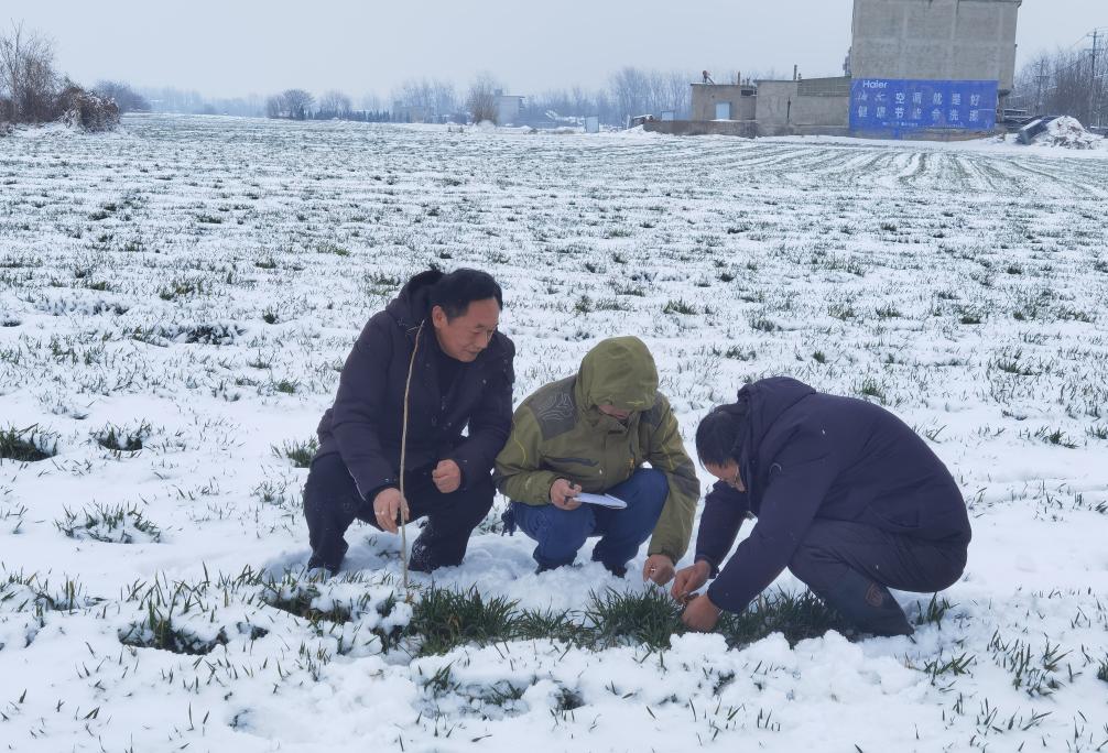 連日來,鳳陽縣鄉(xiāng)兩級220多名農(nóng)技人員活躍在農(nóng)業(yè)生產(chǎn)一線,蹲在田頭、撥開覆雪,仔細查看小麥苗情,提供田管建議。鳳陽縣農(nóng)技推廣中心主任徐德明說,對于糧油生產(chǎn)來說,這場降雪降溫有助于殺滅農(nóng)田中的蟲卵,減輕病蟲害,有利于小麥越冬生長。