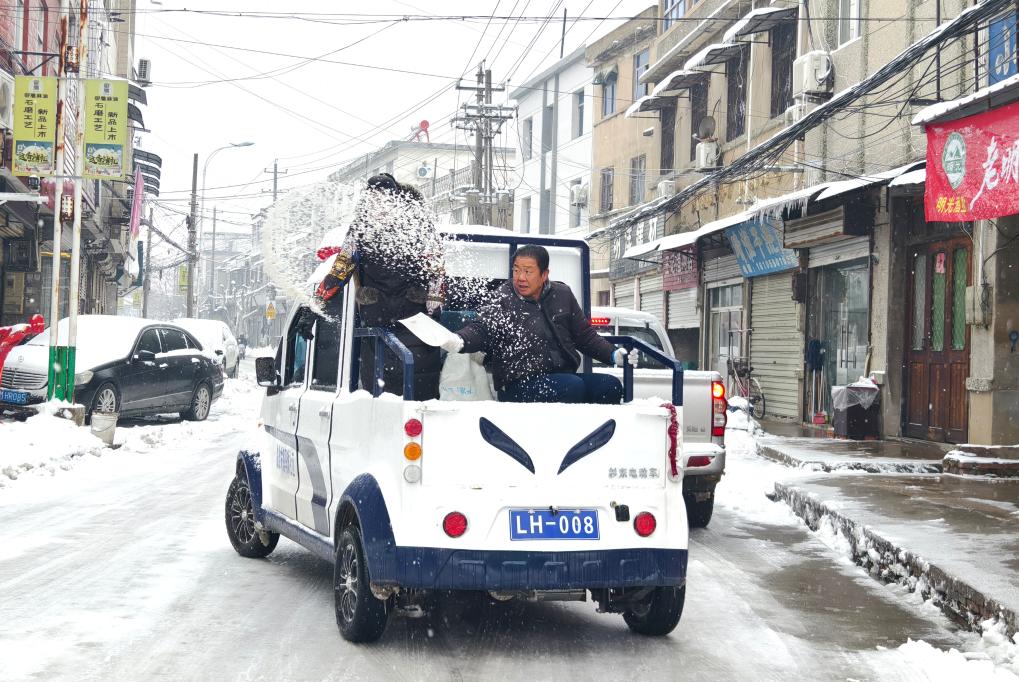 風雪中,正在購置年貨的村民盧德朋搓著手,擦掉頭上的雪,掀開汽車后備箱,各種物品滿滿當當。“由于下雪結(jié)冰,我今天從家開車到這里用了40分鐘左右,天晴時只要10多分鐘?!北R德朋指著后備箱里的物品說,“快過年了,年貨還是要購置的。你看,這里有鏟雪的裝備,還有各種蔬菜、煙花等?!?/p>