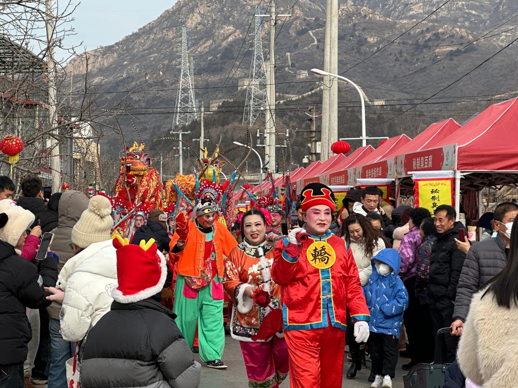 身著戲服的演員走街串巷傳遞新年祝福,對口支援合作地區(qū)特產(chǎn)大受歡迎,鄉(xiāng)村民宿、咖啡館內(nèi)人頭攢動……立春時節(jié),記者來到北京市懷柔區(qū)懷北鎮(zhèn)的河防口村,與村民們一起迎接當?shù)靥厣顒印獞驯惫抨P(guān)迎春大集開幕。