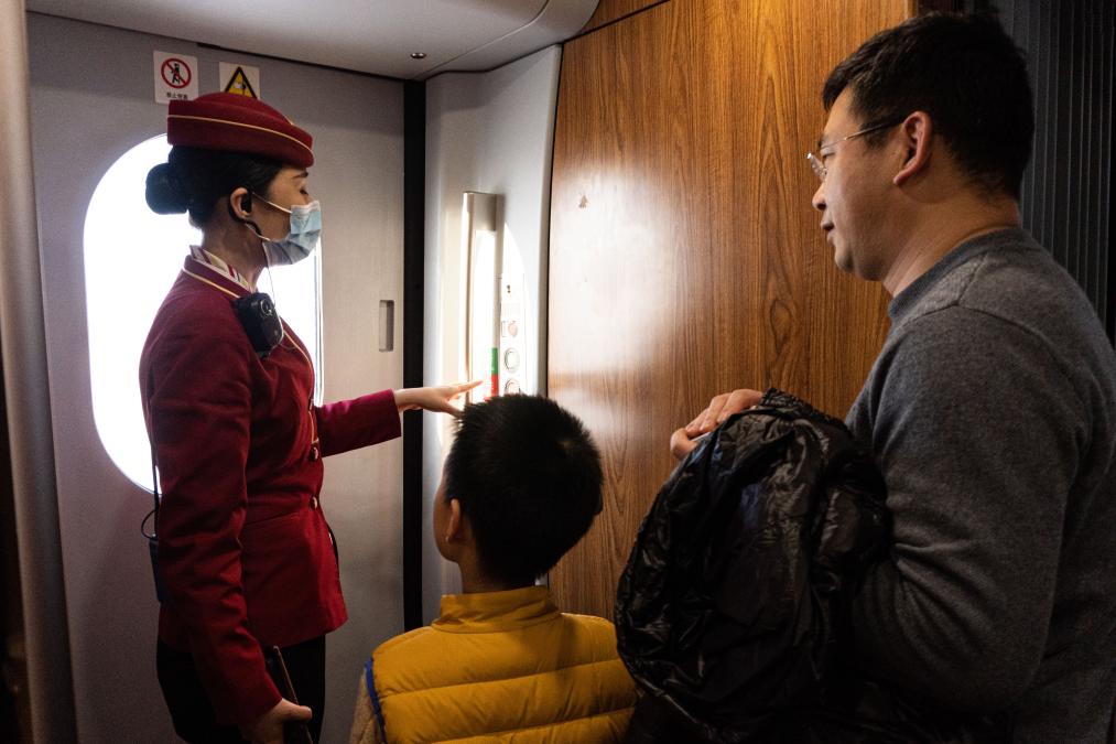 “我有一個(gè)問(wèn)題,要提問(wèn)列車長(zhǎng)!”7歲的小男孩張珹虎頭虎腦,一邊牽住爸爸的手,一邊奔向張林。