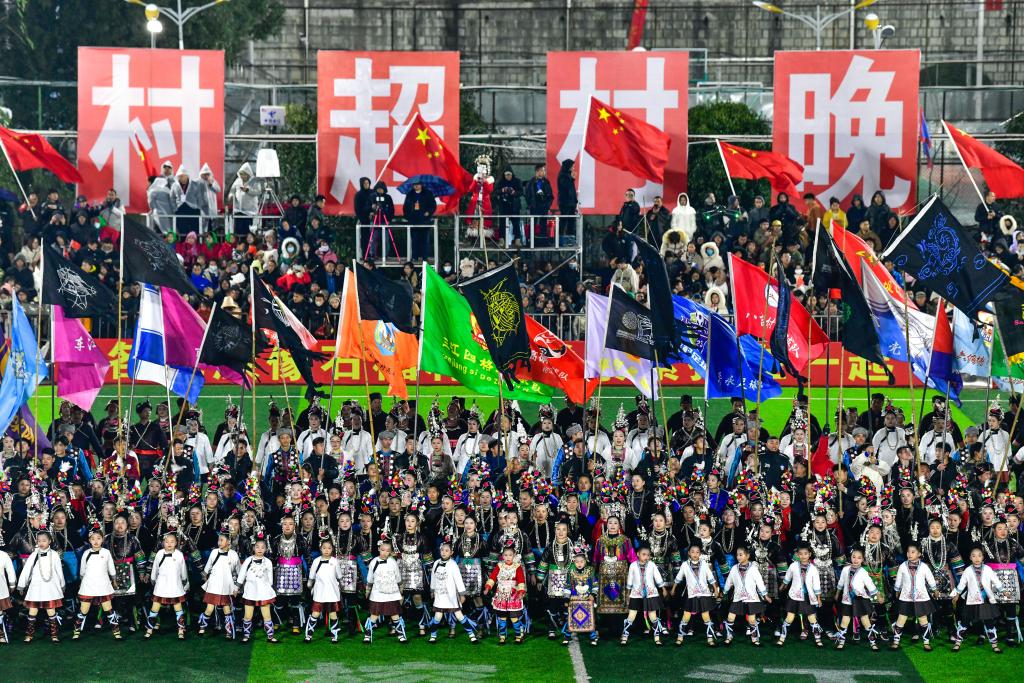 2024全國“村晚”示范展示活動(dòng)暨貴州“村超村晚”2月3日在貴州省黔東南苗族侗族自治州榕江縣拉開帷幕。新華社記者 楊文斌 攝
