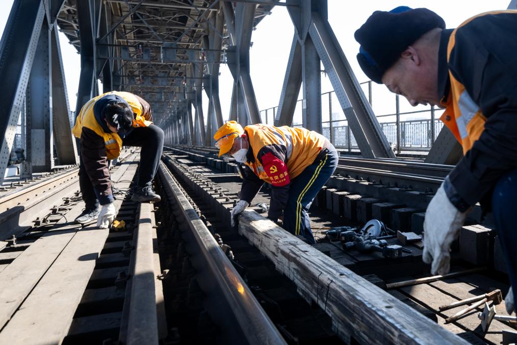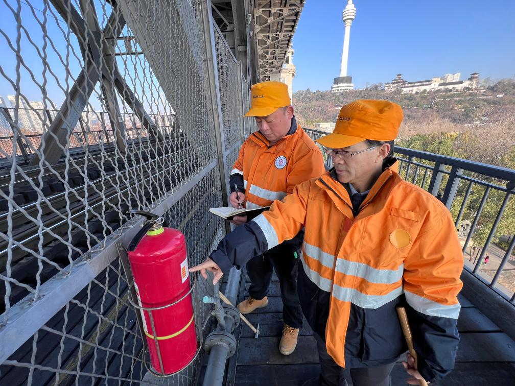農(nóng)歷大年初三,湖北武漢陽光明媚?!叭f里長江第一橋”——武漢長江大橋宛若一條巨龍飛架于江水之上,氣勢恢宏。身穿工作服的陳卿明和同事,低頭、彎腰,循著大橋鐵道仔細(xì)地檢視鋼梁、枕木。