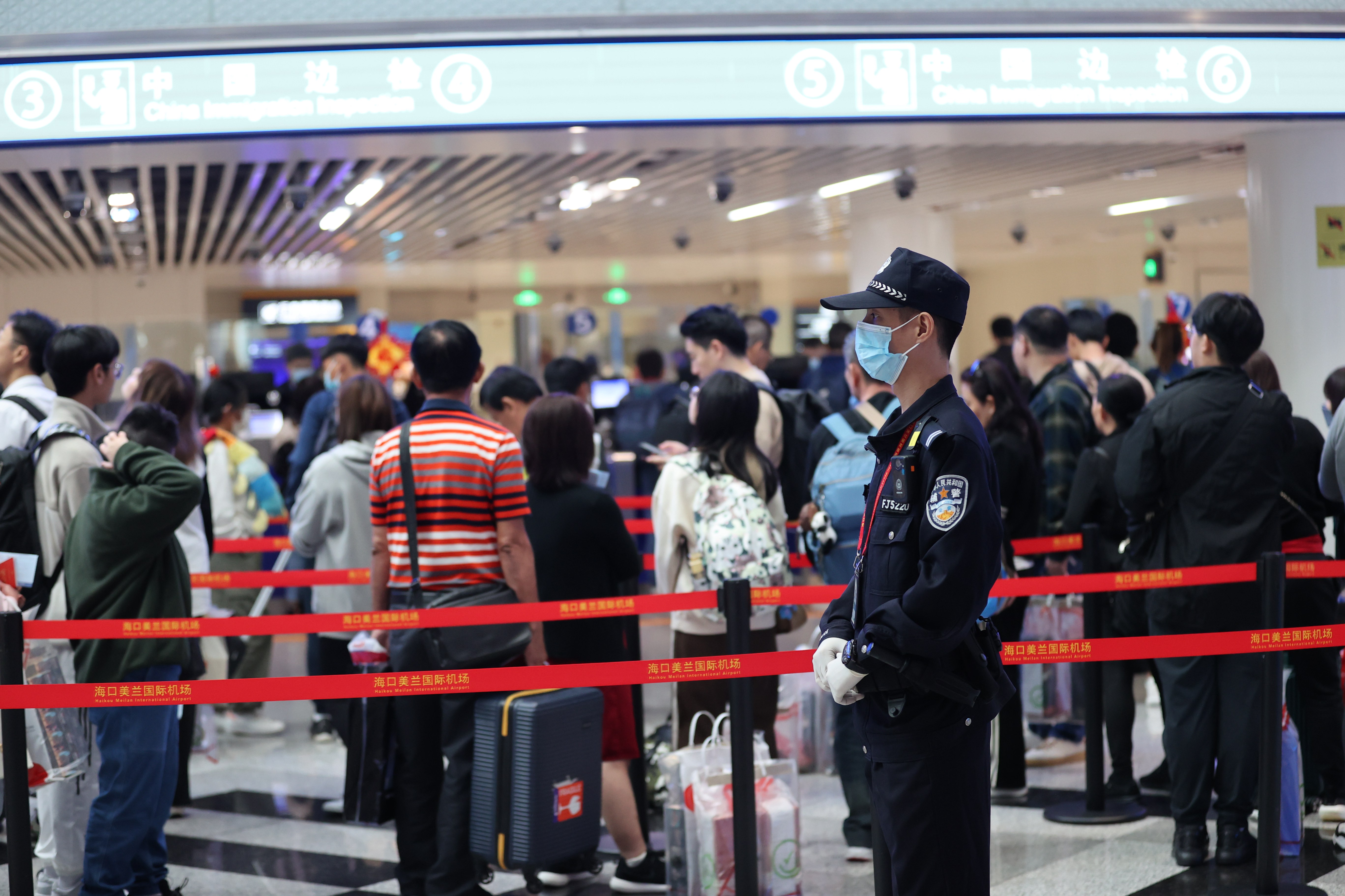 2月10日,正值大年初一。上午10時(shí)許,兩架從新加坡入境海南??诘暮桨酀M載著286名旅客相繼飛抵??诿捞m國際機(jī)場,美蘭出入境邊防檢查站執(zhí)勤四隊(duì)的執(zhí)勤民警又開始忙碌起來。