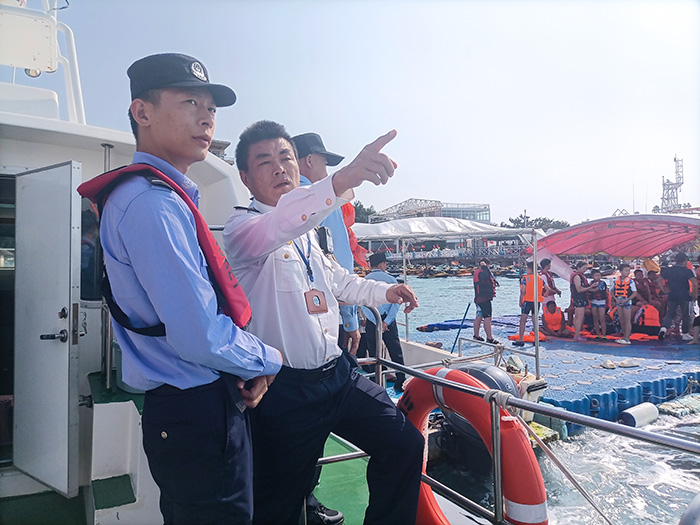“2023年5月,我們依托‘紅帆’平臺,聯(lián)合各管海部門成立三亞海上游艇經(jīng)營活動監(jiān)管黨建聯(lián)盟。今年春節(jié)期間,我們通過黨建聯(lián)盟合作平臺進一步加強游艇管理,將黨建引領融入港船岸線管控工作全過程、全領域,逐步形成黨務與業(yè)務深度融合發(fā)展的新格局?!痹撍撠煷芄ぷ鞯奶K朝潤副所長介紹說。