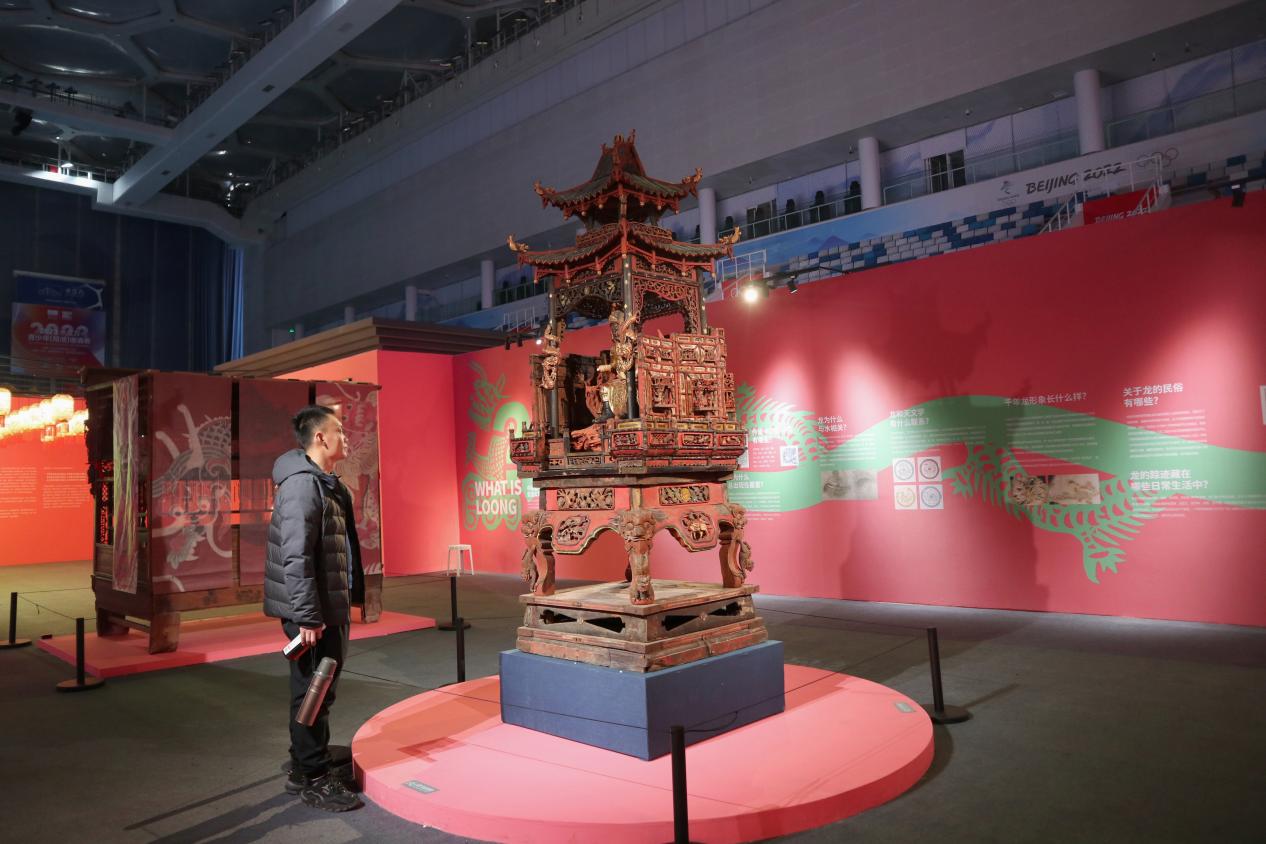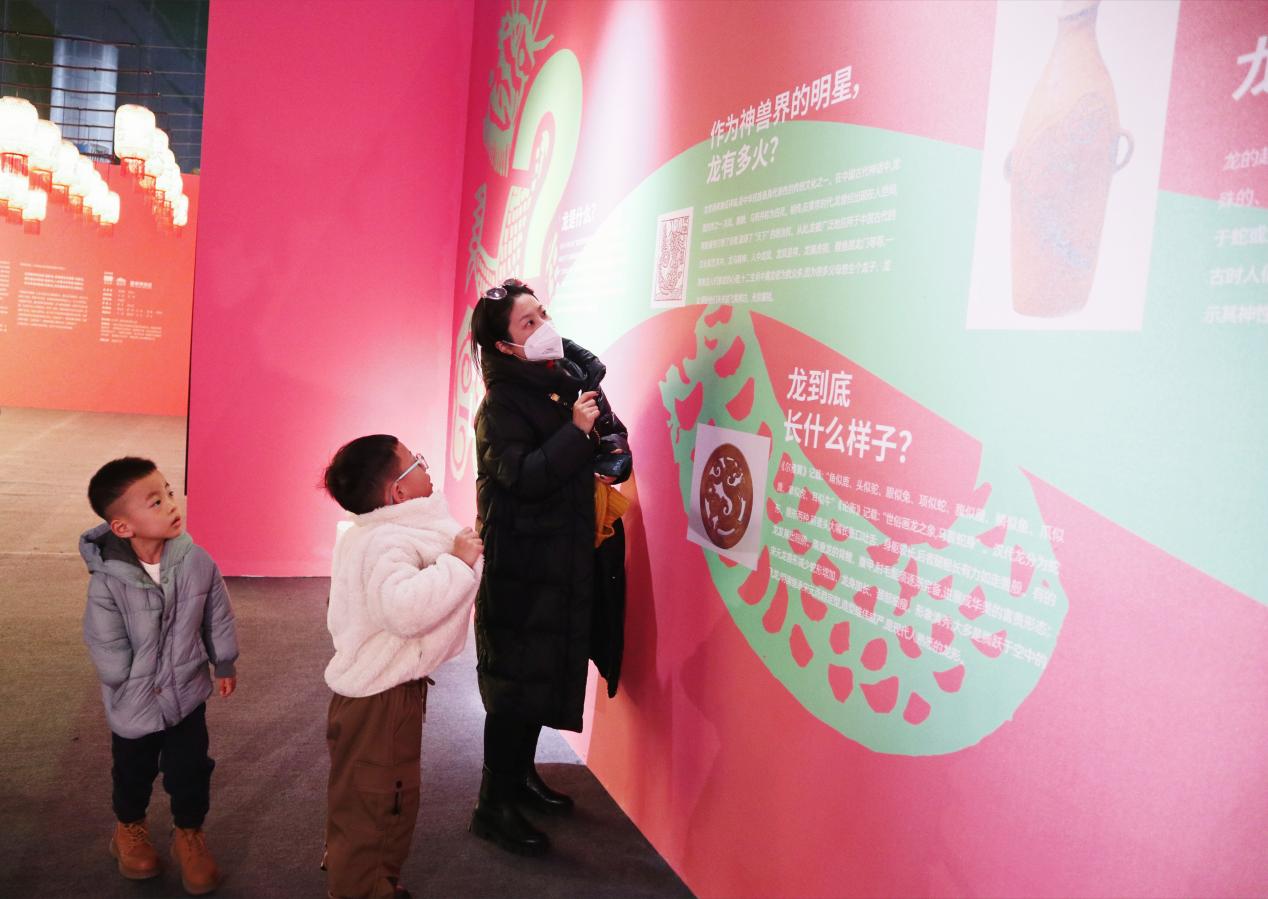 “此次呈現(xiàn)的龍與以往看到的莊重威嚴(yán)的龍不太一樣,從服飾到杯盞再到小小的裝飾品,龍的形象好像融入了百姓的日常生活,變得更加和藹可親?!睆慕K帶家人來(lái)北京過(guò)年的陳女士深有感觸。