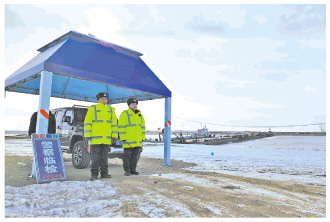1月下旬正午時分,嫩江邊氣溫接近零下20℃,《法治日報》記者身上厚重的冬裝幾分鐘就被江邊的寒風(fēng)吹透。一座簡易浮橋橋頭遮陽棚旁停著一輛噴有“油田特警”字樣的警車,黑龍江省大慶市公安局油田分局的特警隊員正巡查著出市車輛,截斷大慶被盜原油外運(yùn)通道,這是油田公安分局護(hù)衛(wèi)石油安全的重要一環(huán)。