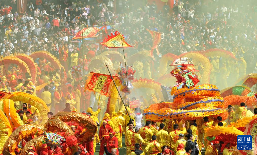 元宵佳節(jié)臨近,人們進(jìn)行傳統(tǒng)舞龍表演,熱熱鬧鬧迎元宵。