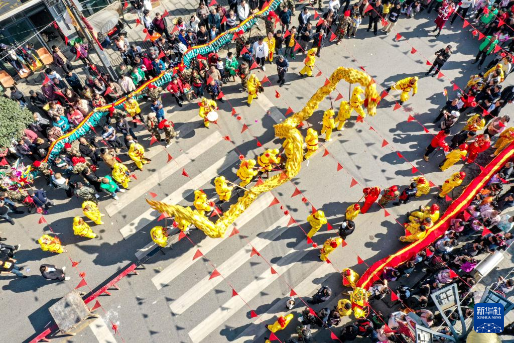 元宵佳節(jié)臨近,人們進行傳統(tǒng)舞龍表演,熱熱鬧鬧迎元宵。