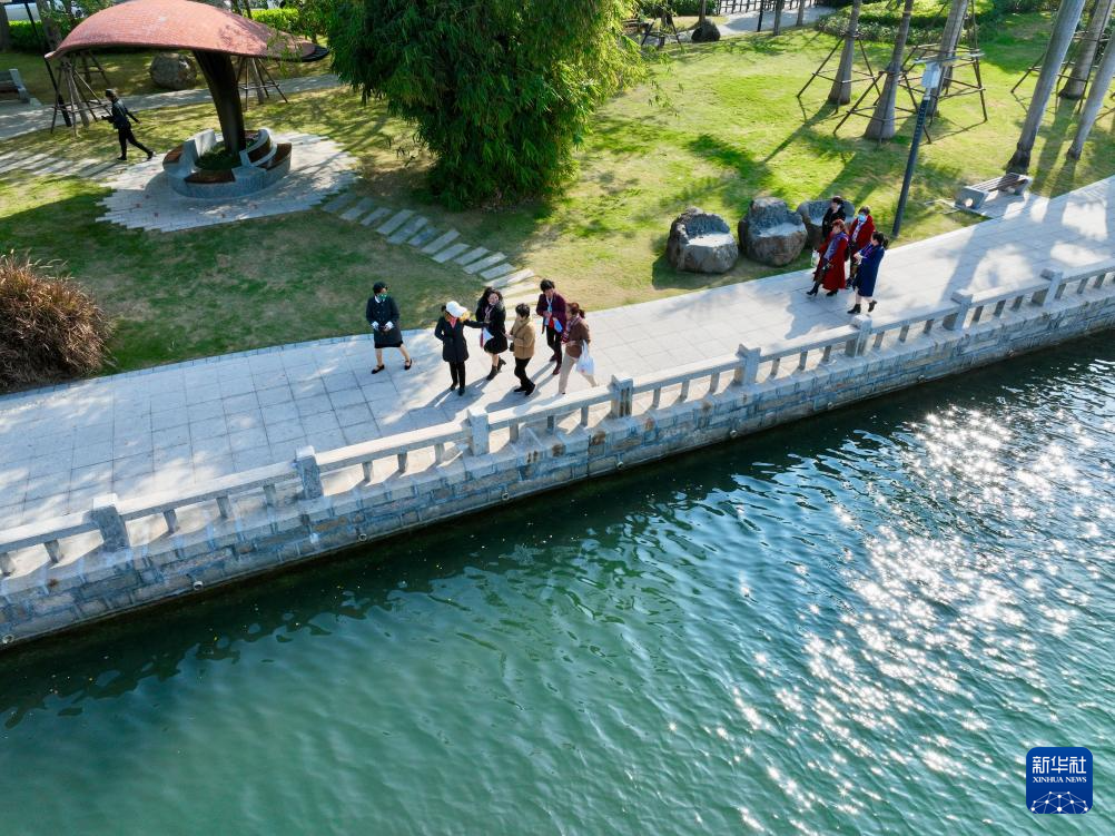 1月24日,廈門(mén)市民在筼筜湖邊散步休閑(無(wú)人機(jī)照片)。新華社記者 姜克紅 攝