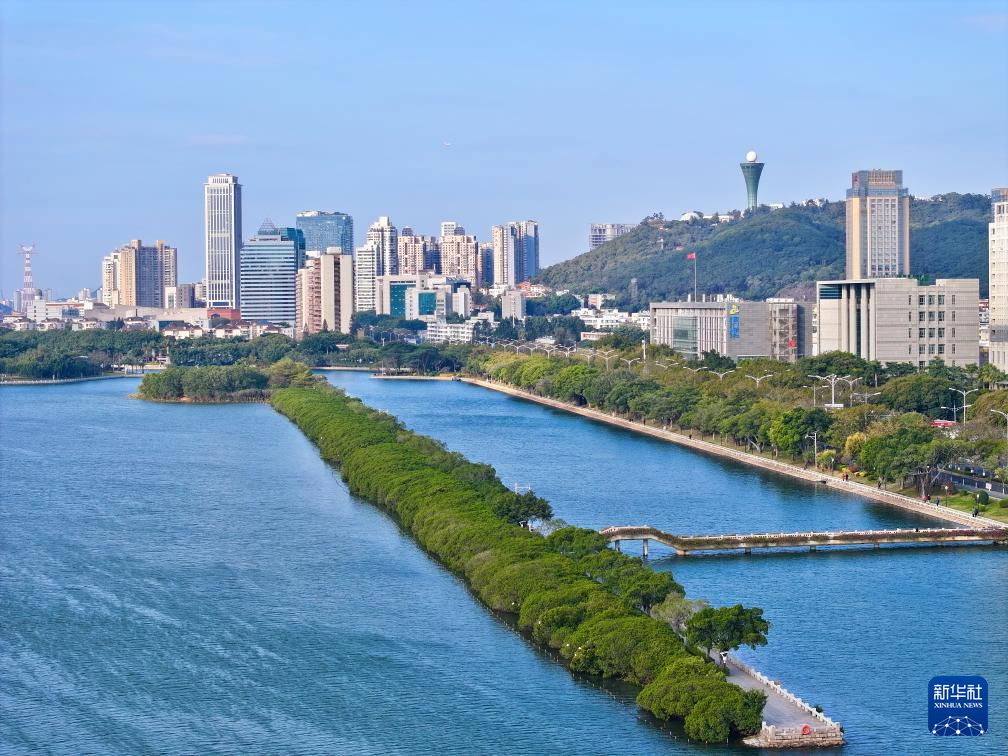 這是1月24日拍攝的廈門(mén)筼筜湖紅樹(shù)林種植帶(無(wú)人機(jī)照片)。新華社記者 姜克紅 攝