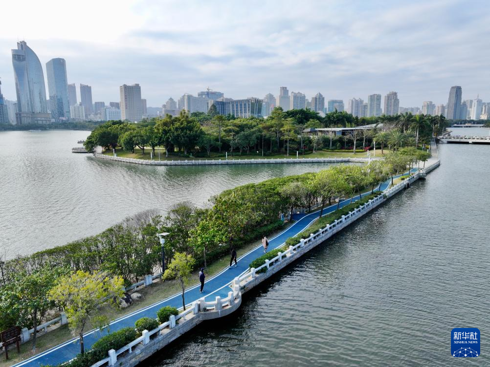 這是1月24日拍攝的廈門(mén)筼筜湖休閑步道(無(wú)人機(jī)照片)。新華社記者 姜克紅 攝