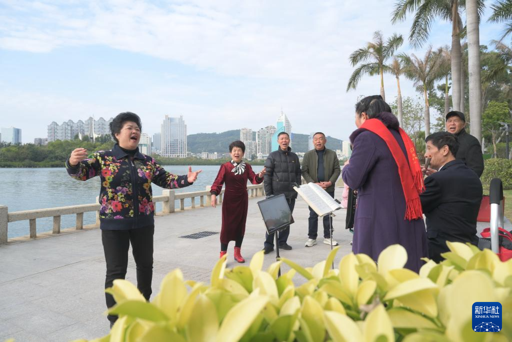 1月24日,市民在廈門(mén)筼筜湖邊的南湖公園開(kāi)展娛樂(lè)活動(dòng)。新華社記者 林善傳 攝