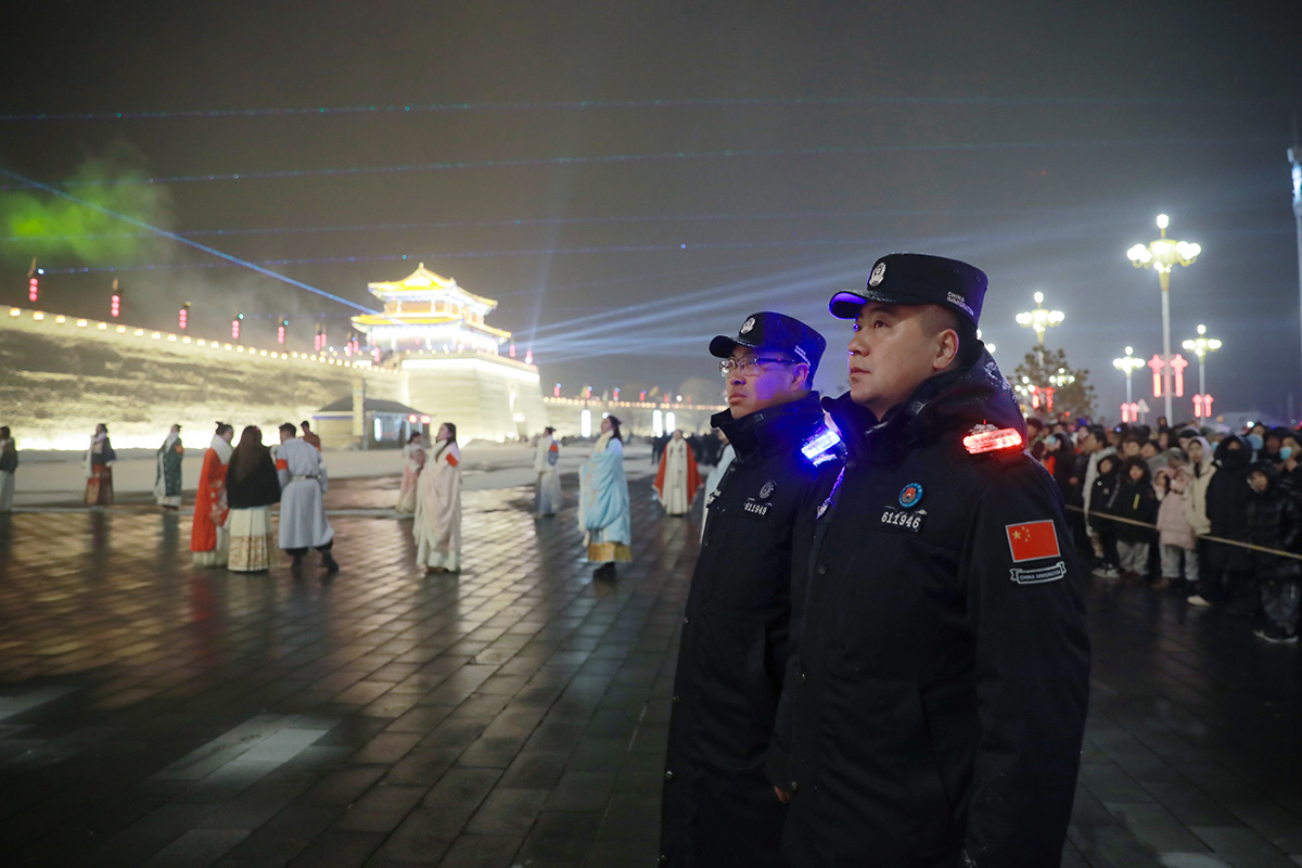 2月24日,元宵佳節(jié),新疆維吾爾自治區(qū)伊犁邊境管理支隊(duì)托布邊境派出所組織民警在察布查爾錫伯自治縣錫伯古城“元宵煙花晚會(huì)”堅(jiān)守崗位,維護(hù)晚會(huì)活動(dòng)現(xiàn)場(chǎng)秩序,確保游客安全。