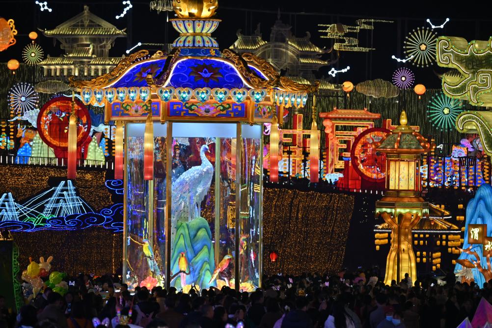在四川自貢,3萬多名游客走進“中國燈城”自貢中華彩燈大世界,觀彩燈、賞演藝、拍全家福??罩校?00架無人機排列出湯圓、舞龍燈等圖樣;地面,舞龍舞獅等民俗表演輪番上演,上百名身著漢服的演員手提花燈巡游……