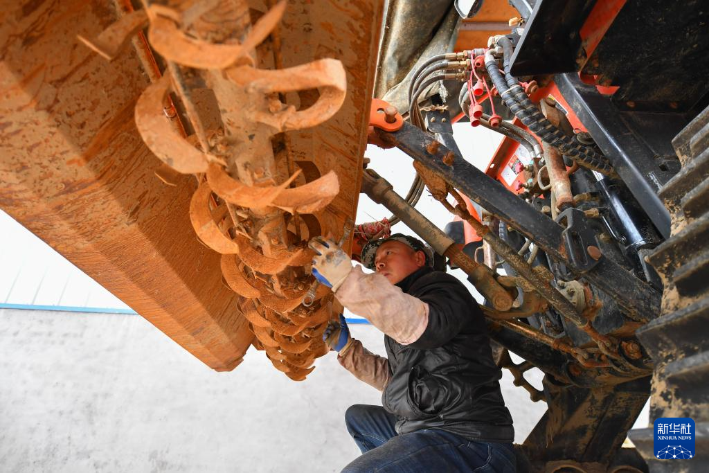 2月25日,在湖南省益陽市赫山區(qū)農(nóng)田謀士水稻專業(yè)合作社,工作人員在檢修農(nóng)機(jī)。